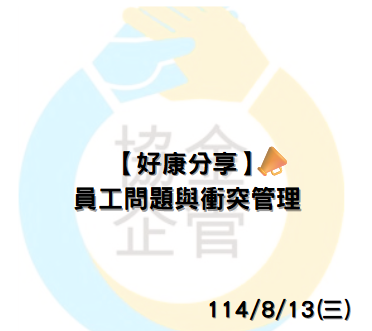 🌟特別感謝中華民國工業區廠商聯合總會邀請本司 副總經理-陳思樺擔任「員工問題與衝突管理」主講嘉賓🌟 在職場中,員工問題與衝突無法避免,但可以預防與 … (繼續閱讀)